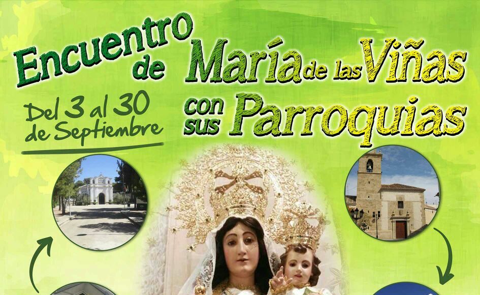 Durante el mes de septiembre La Virgen de las Viñas se encontrará en Tomelloso, con motivo del 75 aniversario de su llegada a Tomelloso ( 07-09-1942) y del 70 aniversario de Su Coronación Canónica (10-09-1947), tendrá lugar una “visita” con una duración de una semana en la que permanecerá en cada una de las Parroquias de Tomelloso.