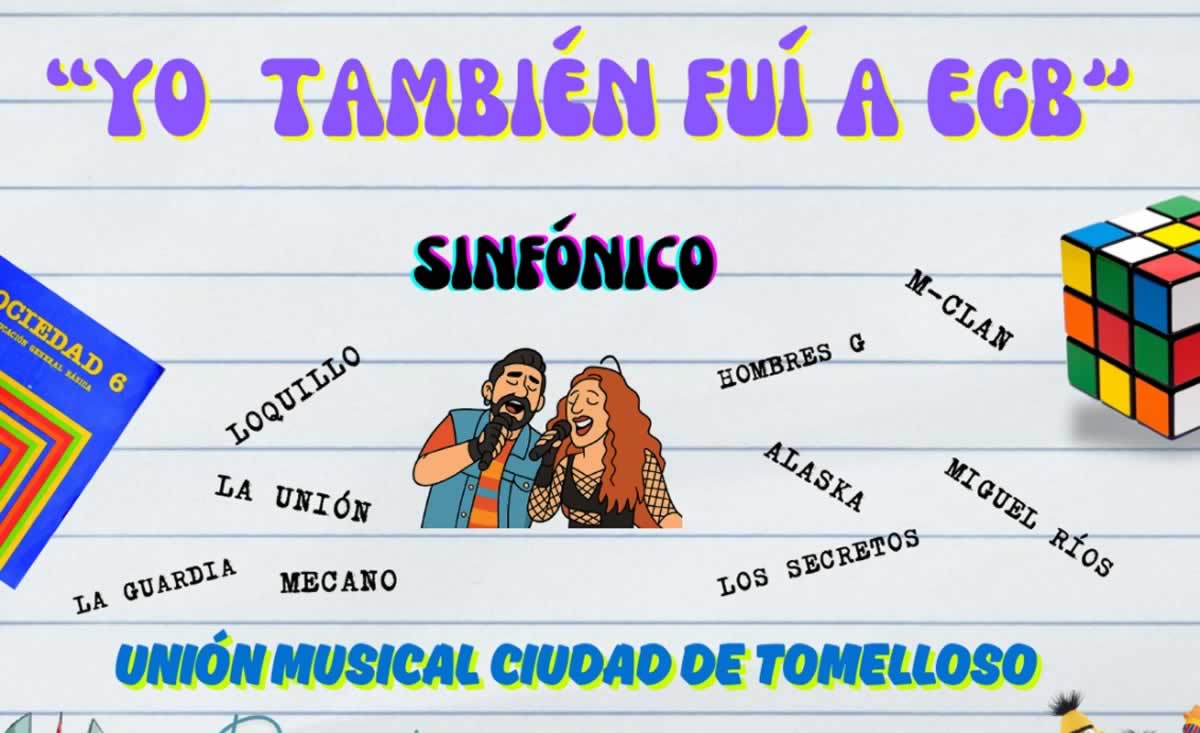La Unión Musical Ciudad de Tomelloso se suma a la programación musical de la Feria y Fiestas 2025 con el espectáculo “Yo también fui a EGB – Sinfónico”, un concierto que reunirá grandes temas del pop y rock español de los años 80 y 90, adaptados para banda sinfónica.