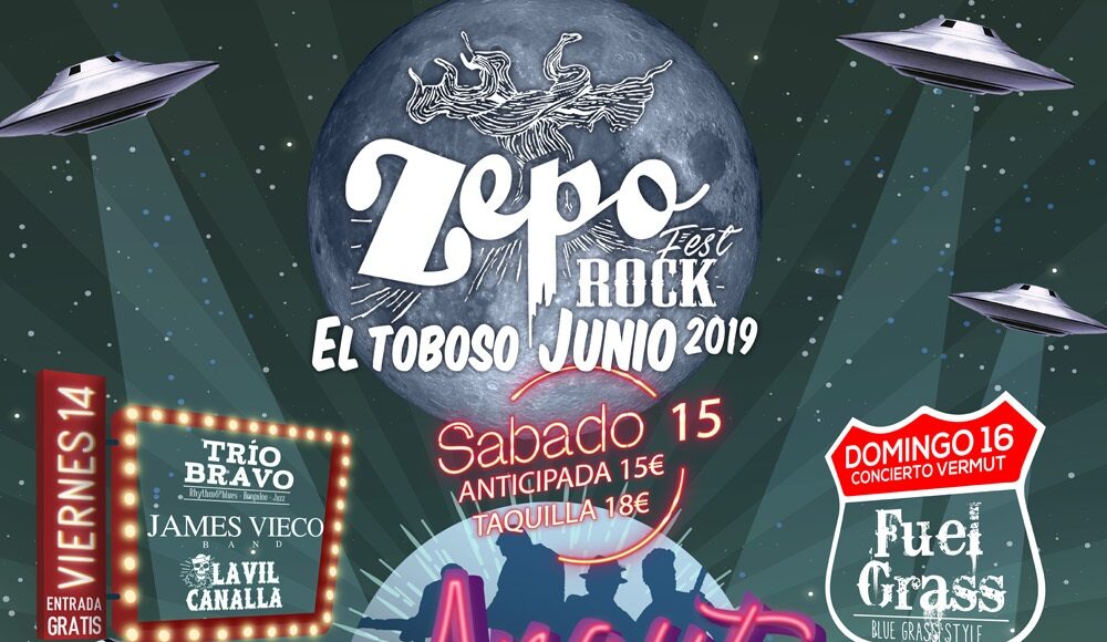 La sexta edición del ZepoRock se celebrará los días 14, 15 y 16 de junio en el Toboso con una propuesta formada por dos grandes escenarios, y, por segundo año consecutivo, consolidando la fórmula de tres días de programación con conciertos al aire libre, clases de baile, Djs, talleres infantiles, pasacalles, visita a bodegas y piscina.