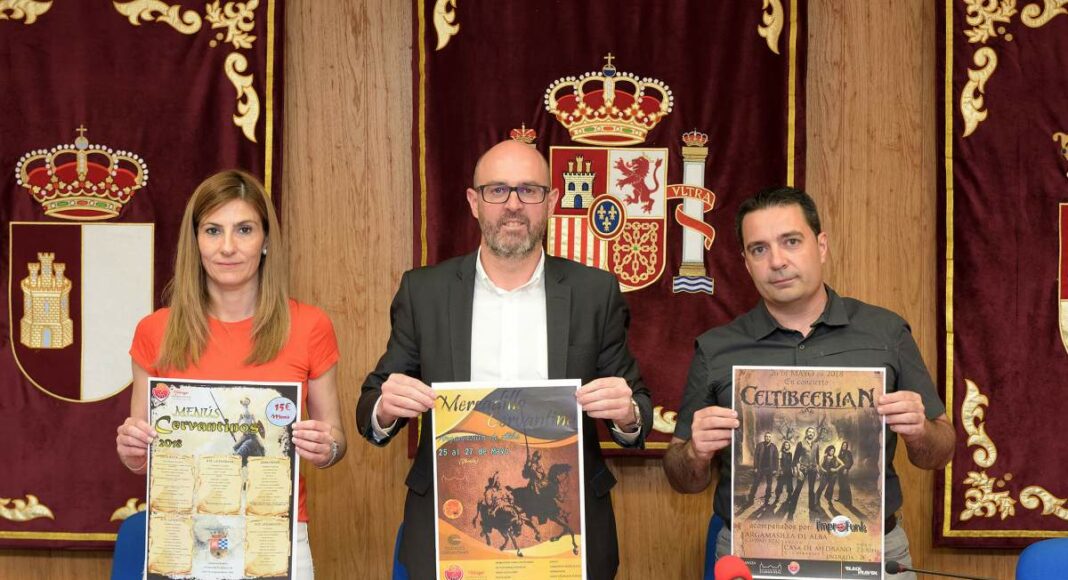 La Glorieta de Argamasilla de Alba, el fin de semana 25, 26 y 27 de mayo, revivirá los siglos XVI y XVII para convertirse en un mercadillo de la época con tascas, malabaristas, artesanos, teatralizaciones, música celta o un dragón, según han informado el alcalde, Pedro ángel Jiménez; el concejal de Cultura, José Antonio Navarro, y la concejala de Turismo, Elia Rubio, en la presentación del XIV Mercadillo Cervantino.