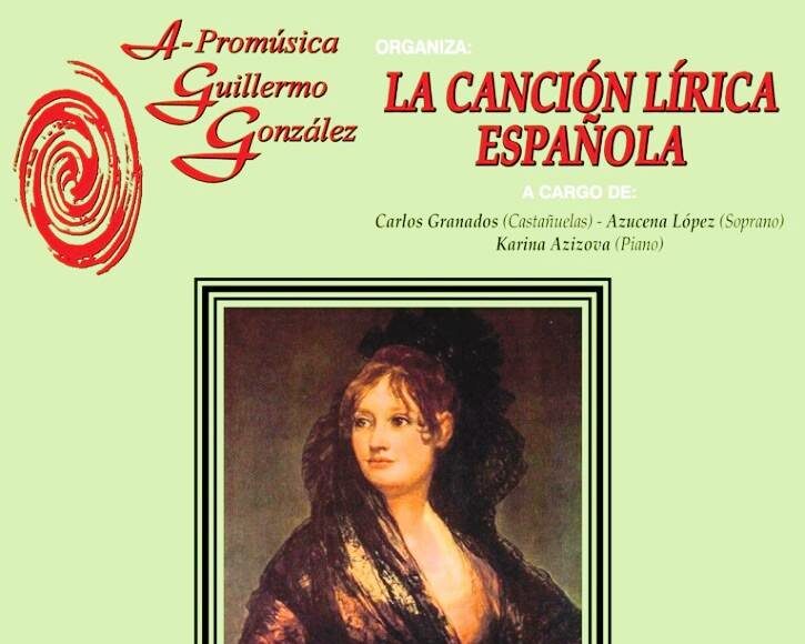La Asociación Promúsica “Guillermo González” ha programado un nuevo concierto de calidad, en esta caso con la canción lírica española como protagonista. La cita será el sábado 7 de febrero a las 20´00 h. en el auditorio López Torres. El concierto como todos los ofrecidos por esta asociación es gratuito y será interpretado por Carlos Granados a las castañuelas; Azucena López, soprano y Karina Azizova al piano.