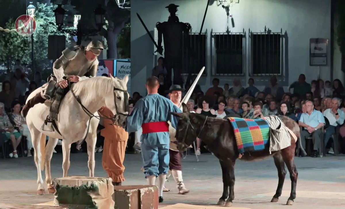 Pilar Serrano de Menchén, directora de la representación, compartió detalles sobre los capítulos escogidos: “Vamos a ver el capítulo 15 y 16 de la primera parte, en la que Don Quijote va a la venta y allí él creía que era un castillo. Es la primera vez que le pegan una buena tunda antes de esa actuación pues vamos a representar la aventura de los yangüeses, los que tienen unas jacas que están pastando y llega Don Quijote y bueno pues el caballo de Don Quijote se enamora de las yeguas y le dan un poquito de jaleo. Entonces quién paga son Don Quijote y Sancho, que les dan una tunda de palos. Va a ser muy divertido, especialmente la escena por la noche en la venta porque tenemos una Maritornes que es un personaje extraordinario, una señora asturiana con un ojo mal. Espero que lo paséis estupendamente”.