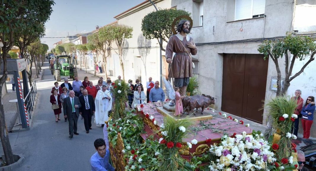 A las 18.30 h. salía la imagen del santo de la Iglesia San Juan Bautista al son del himno nacional, interpretado por la banda de la Agrupación Musical “Maestro Martín Díaz”, y tras de ella el párroco local, Ángel Almansa, junto a representantes del Gobierno municipal, de la Cooperativa Agraria Ntra. Sra. de Peñarroya y de los sindicatos agrarios, a los que se sumaron en la calle Cervantes numerosos tractores de todas las edades, modelos y diseños, muchos de ellos repletos de personas, sobre todo niños y niñas.