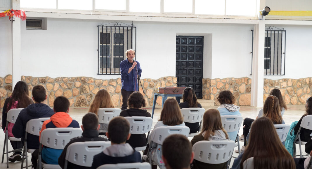 El autor y narrador de cuentos gaditano realizó varias sesiones orientadas a los alumnos del IES Vicente Cano, a los escolares de 6º de primaria y una dirigida al público adulto