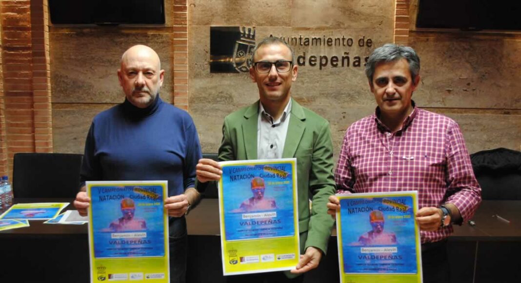 El Complejo Deportivo de Los Llanos de Valdepeñas se convertirá este sábado, 18 de enero, en la sede del V Campeonato Provincial de Natación, que ha sido presentado por el concejal de Deportes, David Sevilla, acompañado del presidente de la Federación de Natación de Castilla-La Mancha, Luis Reguillo, y del representante del Club de Natación de Valdepeñas, Ovidio Ferrón.