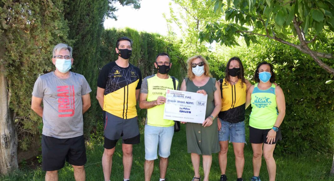 Una representación del Club de Atletismo de Argamasilla de Alba, encabezada por su presidente, Juan Antonio Ruiz, ha hecho entrega a la Asociación Pro-Minusválidos “Brazos Abiertos” de los 500 euros recaudados en la I Carrera Virtual 10k y 5k solidaria, organizada por el Club de Atletismo con la colaboración del Ayuntamiento de la localidad y la participación especial de Alba Manjón.