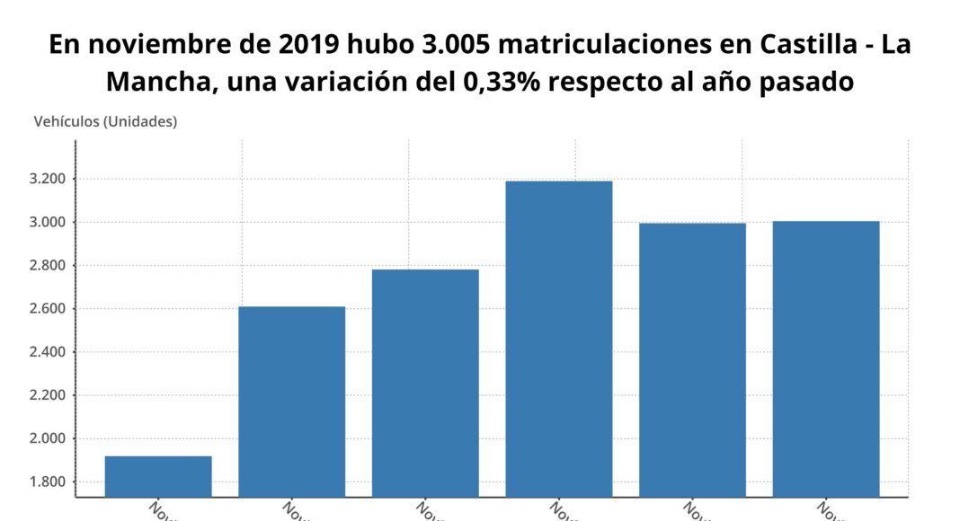 Castilla-La Mancha registró un total de 3.005 matriculaciones de automóviles durante el pasado mes de noviembre, lo que supone un ascenso del 0,33% en comparación con el mismo mes del año anterior, según datos de las asociaciones de fabricantes (Anfac), concesionarios (Faconauto) y vendedores (Ganvam).