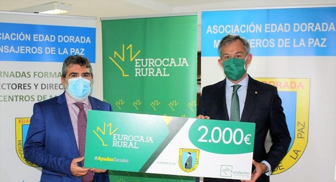 El presidente de Eurocaja Rural, Javier López Martín, ha hecho entrega de este premio al presidente de Edad Dorada Mensajeros de la Paz en Castilla-La Mancha, Julio Zabaleta Rodríguez.