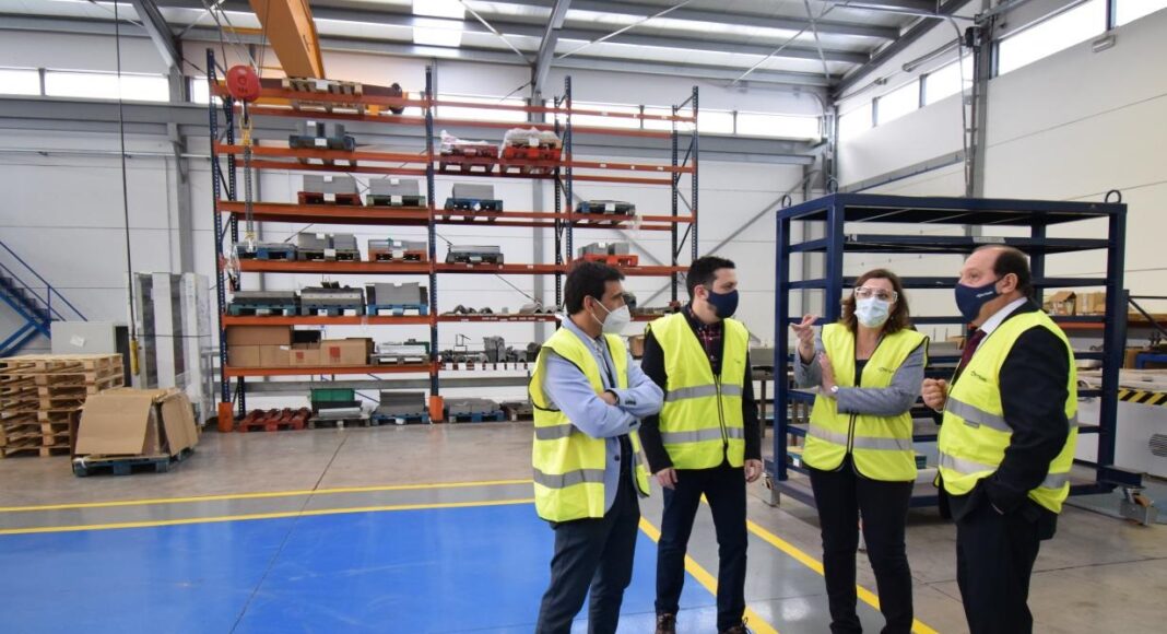 Durante la visita a la empresa de Almagro, Patricia Franco ha estado acompañada por el director general de Empresas, Javier Rosell; el alcalde de Almagro, Daniel Reina; y el responsable de la empresa almagreña, José Cambronero.
