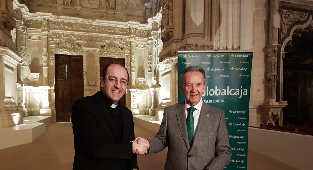 El presidente de Globalcaja, Carlos de la Sierra, y el Deán presidente del Cabido de la Catedral de Cuenca, José Antonio Fernández, han suscrito un convenio de colaboración que tiene una duración de cuatro años, que supone poner en marcha el “Proyecto Ilumina la Catedral”, consistente en la instalación eléctrica punto por punto de dos de las naves de la Catedral conquense, con el objeto de enriquecer y promover las visitas culturales, de culto religioso y demás actos organizados por dicho Cabildo.