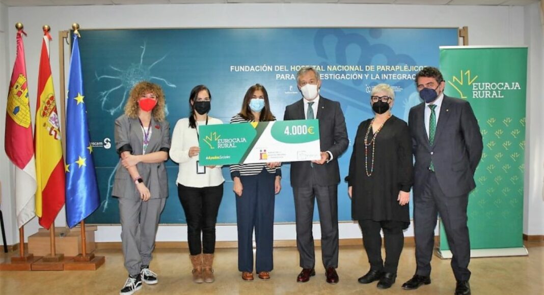 El presidente de la Fundación Eurocaja Rural, Javier López Martín ha entregado a la directora del Hospital Nacional de Parapléjicos, Sagrario de la Azuela, un cheque de 4.000 euros para colaborar en uno de sus proyectos de investigación sobre la COVID-19.