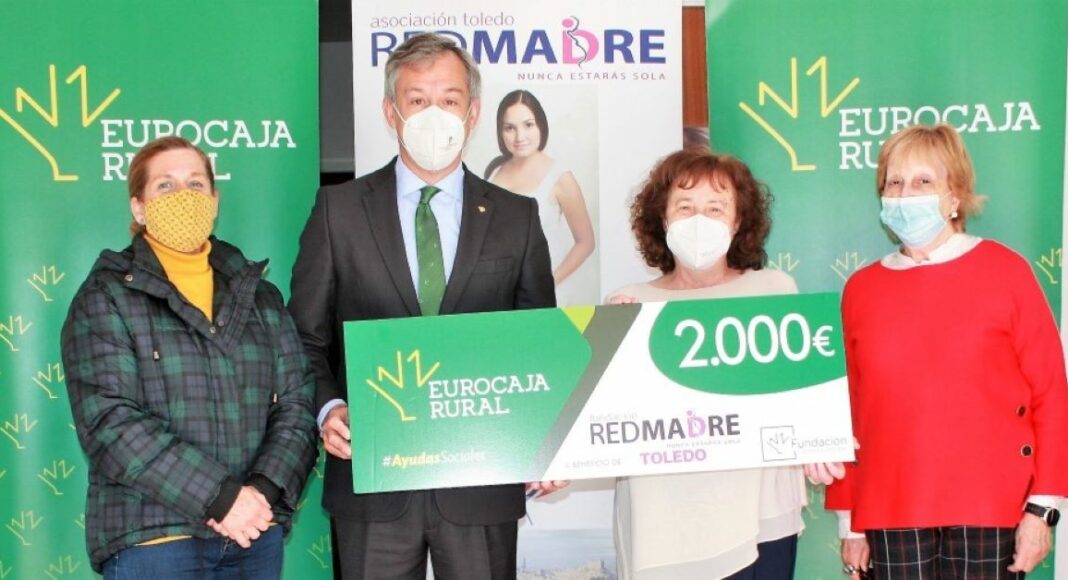 El presidente de Eurocaja Rural, Javier López Martín, ha hecho entrega de un cheque de 2.000 euros a la presidenta de Red Madre en Toledo, Ana Pérez Álvarez, como premio a uno de los proyectos ganadores de la primera categoría de las ‘Ayudas Sociales a personas en riesgo de exclusión y colectivos desfavorecidos’. La finalidad de este proyecto es hacer entrega a estas familias de productos de alimentación y artículos básicos de primera necesidad.