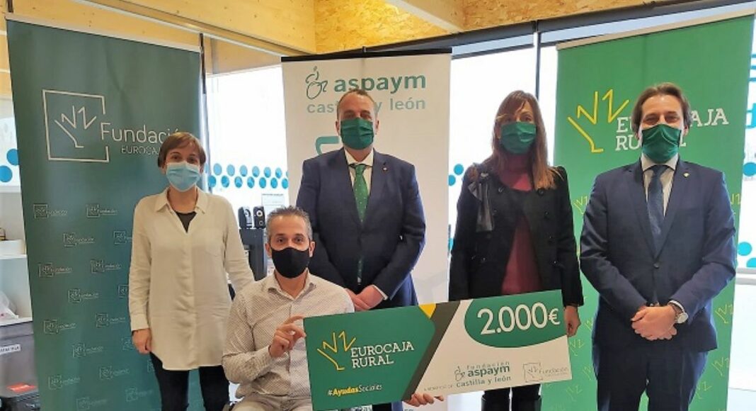 La Fundación Eurocaja Rural ha entregado a Aspaym Castilla y León (Asociación de personas con lesión medular y otras discapacidades físicas), un cheque valorado en 2.000 euros como beneficiaria de la segunda convocatoria de ‘Ayudas Sociales Frente al COVID-19’, en concreto la relativa a la categoría ‘Atención Sanitaria, Sociosanitaria y Tercera Edad’, y a la que optaron finalmente más de 70 proyectos de todo el ámbito de actuación donde opera la entidad financiera: Castilla-La Mancha, Madrid, Valencia, Murcia y la provincia de Ávila.