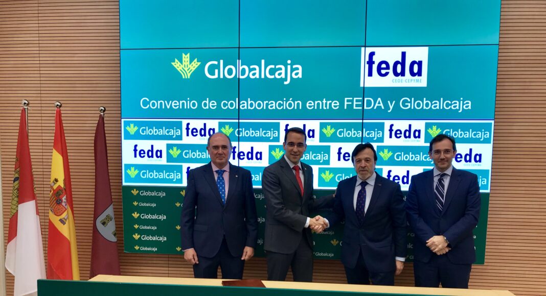 El director general de Globalcaja, Pedro Palacios, y el presidente de la Confederación de Empresarios de Albacete (FEDA), Artemio Pérez, han renovado el convenio de colaboración en materia financiera, que tiene el objeto de promover un marco global y específico de servicios y productos financieros que Globalcaja ofrece en condiciones preferentes a FEDA, así como a sus empleados, asociados y empleados por cuenta ajena de los asociados, en todo lo concerniente a operaciones de pasivo, operaciones de activo y servicios.