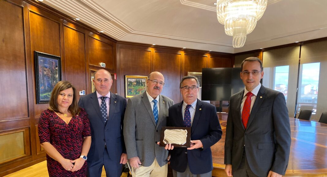 El director general de Globalcaja, Pedro Palacios, y el vicepresidente, Herminio Molina, en nombre del Consejo Rector de la entidad, han hecho entrega de un reconocimiento a José Mansilla, ex decano del Colegio de Ingenieros Agrónomos de Albacete, por su labor, trayectoria y dedicación durante su mandato al frente de dicha institución. Palacios ha destacado las buenas relaciones existentes entre las dos entidades y ha puesto en valor el trabajo realizado por Mansilla durante todo este tiempo.