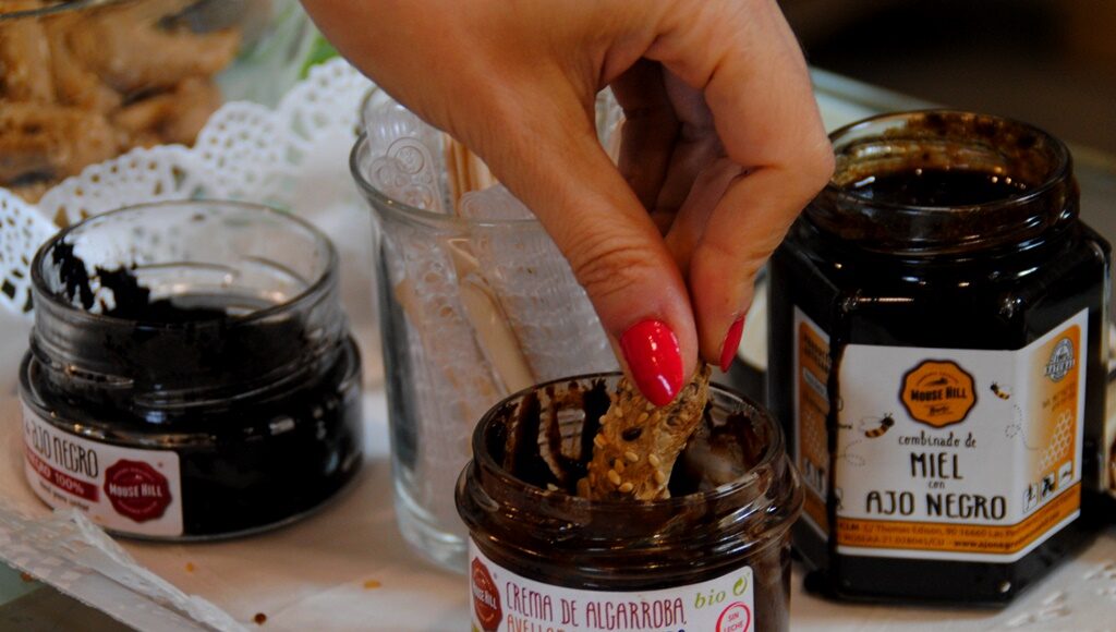 Una de las novedades que se expone en esta edición de la Feria Internacional del Ajo es una crema que sabe a cacao, pero en realidad lleva ajo negro y algarroba –una legumbre, con un sabor dulce, que tiene muchas similitudes con el cacao, pero que aporta un porcentaje mínimo de grasa-.