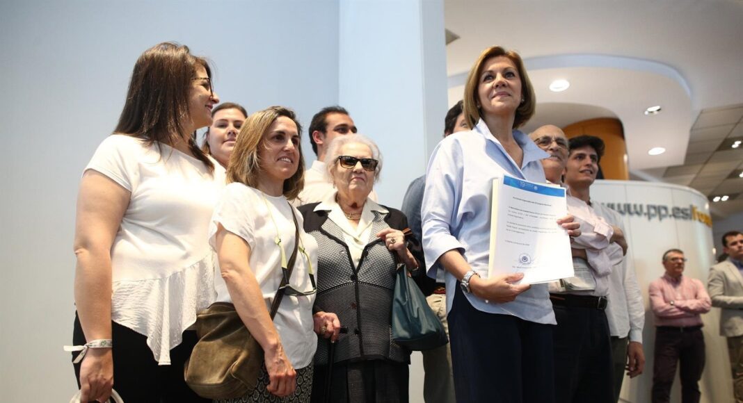 La precandidata a la presidencia del PP María Dolores de Cospedal, se ha mostrado este lunes «absolutamente» partidaria de que tras la primera votación de los afiliados, que tendrá lugar el 5 de julio, los dos candidatos elegidos se integren en una única lista, incluso en el caso de que ella quedase en segundo lugar en esa primera vuelta.