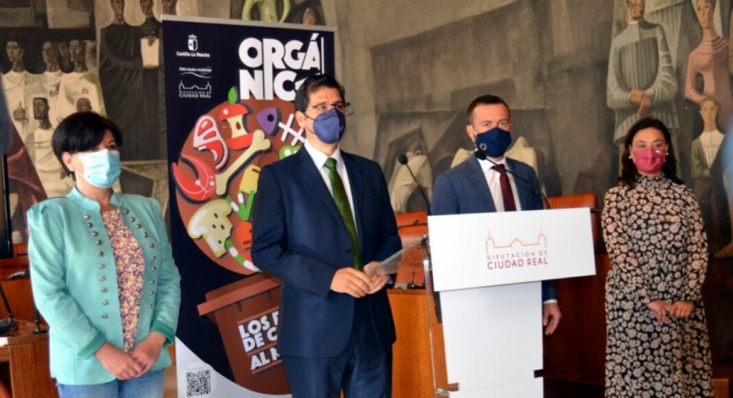 El presidente de la Diputación de Ciudad Real, José Manuel Caballero Serrano, y el Consejero de Desarrollo Sostenible, Jose Luis Escudero, junto a la alcaldesa de Ciudad Real, Pilar Zamora, presentaron los nuevos contenedores de recogida selectiva de biorresiduos y dos vehículos recolectores en la Diputación Provincial. Les acompañaba la presidenta del Consorcio de Residuos Sólidos Urbanos, RSU, María Fresneda, entre otros. De esta forma se da comienzo en Castilla-La Mancha a esta recogida del 5 contenedor, el marrón.