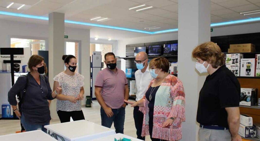 Acompañada del alcalde, Pedro Ángel Jiménez, y del delegado provincial de Economía, Empresas y Empleo, Agustín Espinosa, Olmedo ha visitado un par de empresas locales beneficiarias de estas ayudas. En primer lugar, han visitado un establecimiento de la cadena “Tien 21” dedicado a la venta de electrodomésticos que cuenta con tres empleados, y a continuación, las instalaciones de “Ebanartis”, empresa familiar con más de medio siglo de tradición en el sector de la madera que se dedica a la realización y ejecución de proyectos de decoración y a la fabricación y restauración de muebles. Al frente de la empresa están la ingeniera de edificación y diseñadora industrial Águeda Serrano y el ebanista y artesano Jesús García.