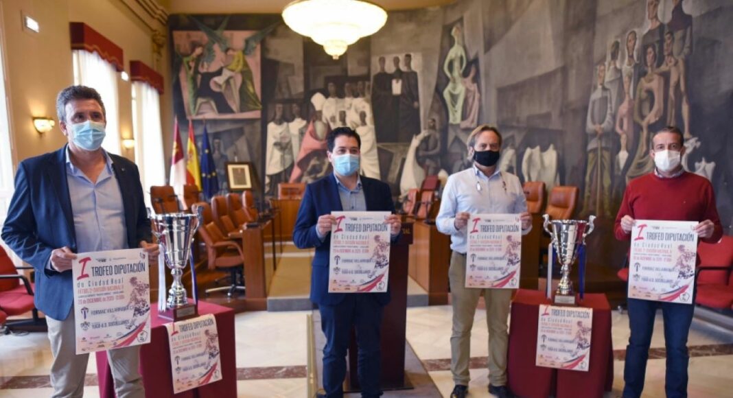 El vicepresidente cuarto de la Diputación provincial encargado del área de Deportes, David Triguero ha presentado en el Salón de Plenos del Palacio provincial el I Trofeo Diputación de Fútbol en la categoría de segunda B , acompañado por el delegado territorial de la Federación de Fútbol de Castilla-La Mancha, Daniel López de Sancho; el presidente del Formac Villarrubia, José Luis Urda y el presidente de la Unión deportiva Yugo Socuéllamos, Jordi López.