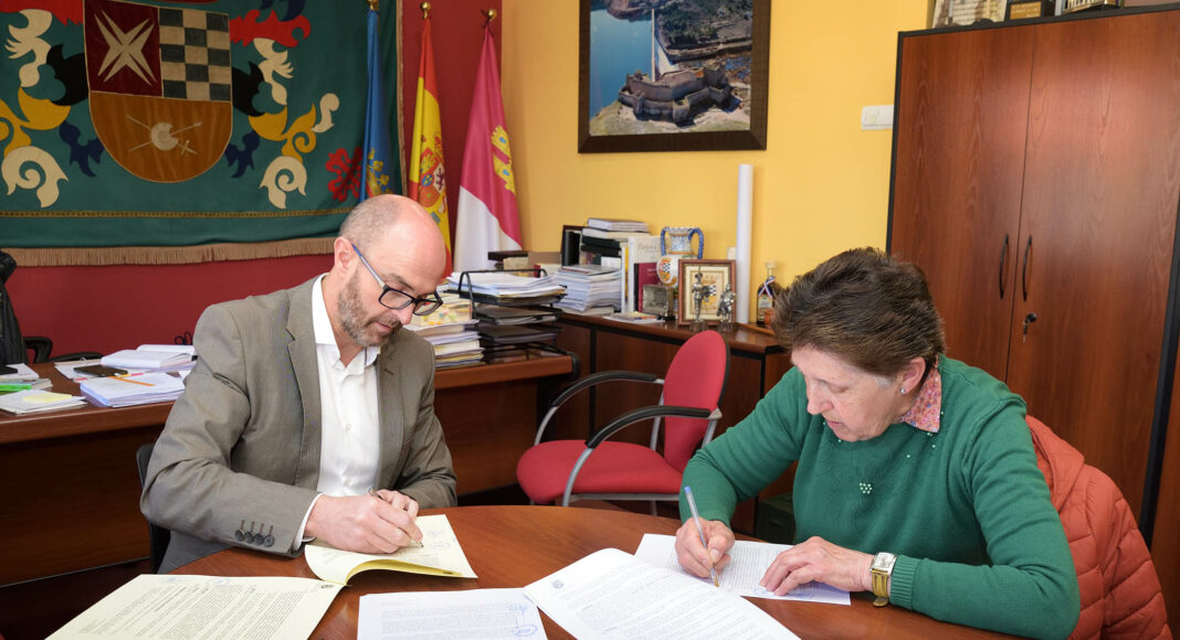 Pedro Ángel Jiménez, alcalde de Argamasilla de Alba, y Vicenta Jiménez, Presidenta de la Asociación Protectora de Animales y Medio Ambiente (APAYMA) de Argamasilla de Alba rubricaron el convenio a través del cual el consistorio contribuye económicamente al desarrollo de las actividades de la asociación.