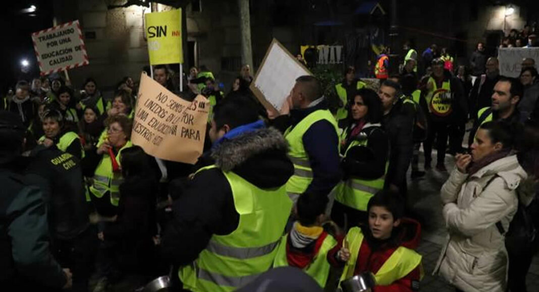 Algo más de un centenar de padres y madres de CEIP ‘Señorío de Muriel’ de Torrejón del Rey (Guadalajara) provistos de cacerolas, sartenes, cencerros y otros útiles que provocan ruido, se han concentrado ante las puertas del Ayuntamiento de esta localidad del Corredor del Henares para reclamar un instituto nuevo «ya» para el municipio y protestar contra la decisión de la Junta de reconvertir su colegio en dicho instituto y trasladar a sus escolares al otro centro escolar.
