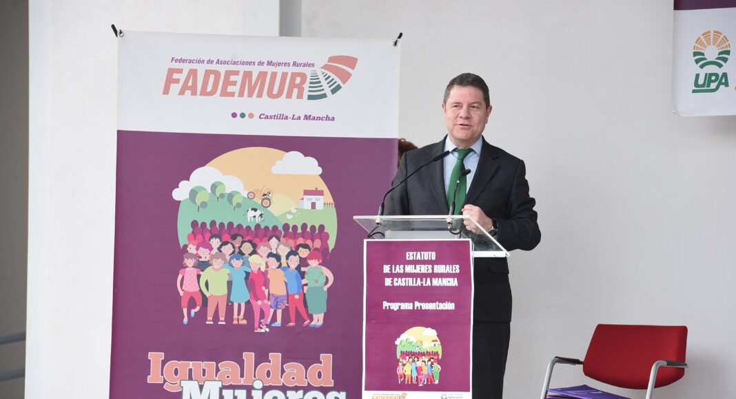 Así lo ha avanzado el titular del Ejecutivo regional durante las ‘Jornadas del Estatuto de la Mujer Rural’ organizadas por la Federación de Asociaciones de Mujeres Rurales (FADEMUR) y la Unión de Pequeños Agricultores (UPA), en Pedro Muñoz (Ciudad Real).