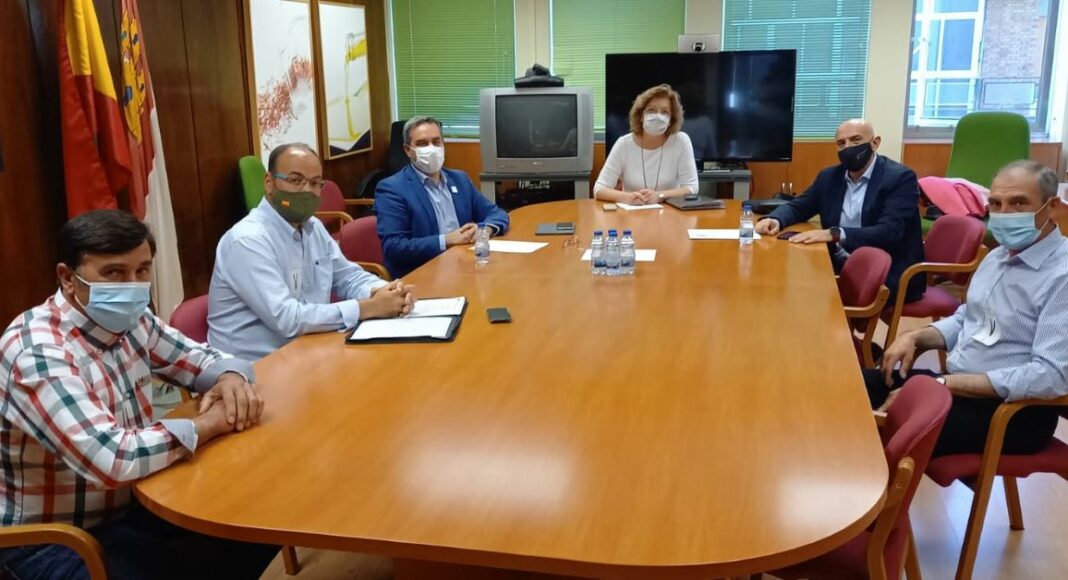El presidente de la Confederación Hidrográfica del Guadiana (CHG), Samuel Moraleda; el director general de Desarrollo Rural de la Consejería de Agricultura, Agua y Desarrollo Rural de Castilla-La Mancha, José Juan Fernández, junto a la delegada de Agricultura de la Junta de Comunidades en Ciudad Real, Amparo Bremard, y los representantes de la Asociación de Afectados por la No Legalización de Pozos de Explotaciones Prioritarias y Agricultores a Título Principal (ATP) Miguel Fernández, Francisco Zarco y Abel Alcolea se han reunido en la delegación de Agricultura en Ciudad Real para abordar la problemática de los pozos de regadío de las explotaciones prioritarias.