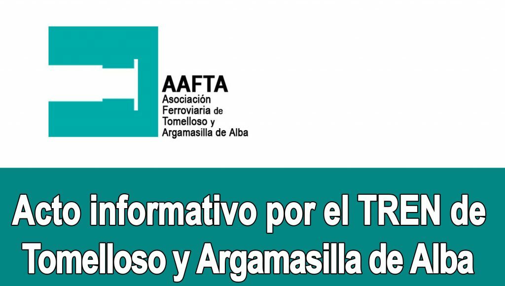 La Asociación Ferroviaria de Tomelloso y Argamasilla de Alba (AAFTA) ha programado dos actos informativos este mes de enero. Dichos actos irán enfocados a proporcionar información sobre la petición actual de integración férrea para Tomelloso y Argamasilla, las diferentes opciones planteadas y las posibilidades de estas. Con la participación de la Plataforma Ciudadana por la Comarca de Tomelloso, serán el sábado 14 de Enero a las 12:00h en el Casino de San Fernando de Tomelloso y el sábado 21 de enero de 2017 a las 18:30h en la Casa de Castilla-La Mancha en Madrid.