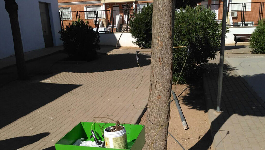 Las áreas donde se están aplicando estas técnicas en la ciudad son el Parque de Educación Vial, Barrio San José, Plaza de Málaga, Plaza del Mercado de Abastos, Calle San Antonio (en el Centro de Rehabilitación Psicosocial y Laboral, CRPSL). En estos espacios es donde se va a probar su efecto y beneficios, en el resto de áreas de olmos de la ciudad se usará la tradicional técnica de la fumigación, para poder comparar los efectos.