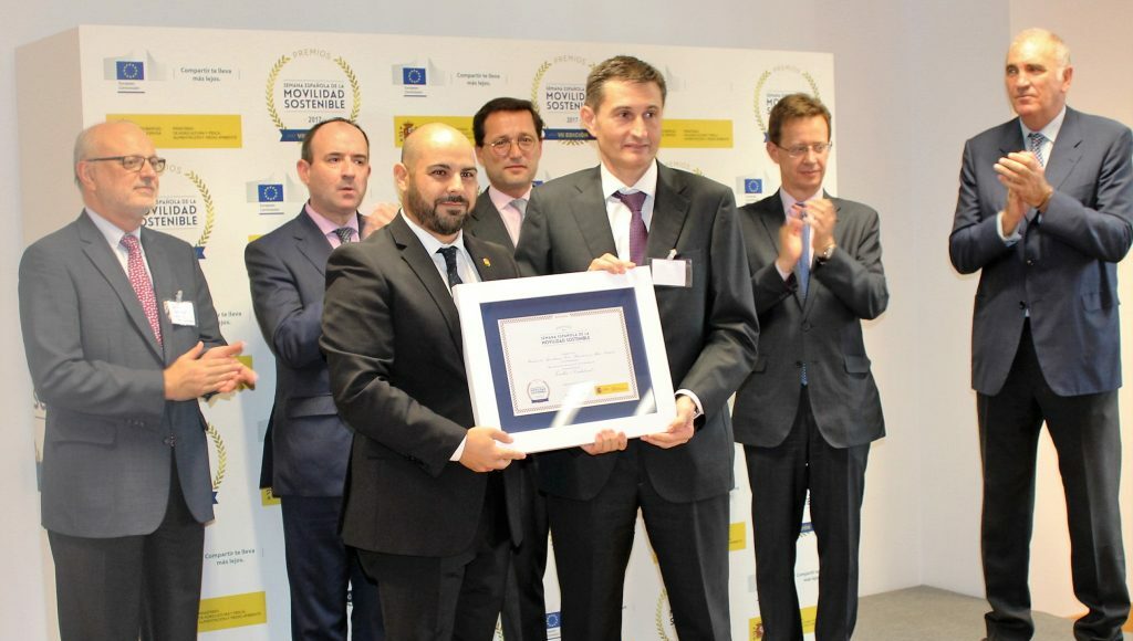 El Ayuntamiento de Tomelloso ha recibido este jueves la medalla de Bronce en los Premios de la Semana Española de la Movilidad (SEM).  El concejal de Hacienda, Francisco José Barató recibió el galardón de manos del subsecretario del Ministerio de Agricultura y Pesca, Alimentación y Medio Ambiente (MAPAMA), Jaime Haddad.  Una iniciativa que este año se ha celebrado bajo el lema ‘Compartir te lleva más lejos’ y que se enmarca en la Semana Europea de la Movilidad.