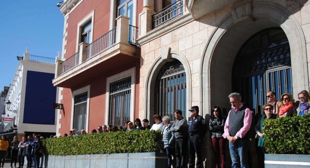 Representantes de la Corporación, de la ciudadanía y agentes de la Guardia Civil y de la Policía Local han guardado cinco minutos de silencio. A continuación, la Corporación municipal ha depositado un centro de flores blancas junto al monolito de la entrada de la estación de Renfe.