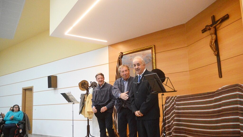 La Hermandad de la Virgen de las Viñas animó el café con un espectáculo centrado en la ciudad y su Patrona. Así, proyectaron un vídeo que, arrancando con imágenes en blanco y negro de una de las primeras romerías, ofreció un reportaje de el “Encuentro de María de las Viñas con sus parroquias”, que con tanto éxito tuvo lugar el pasado mes de septiembre.