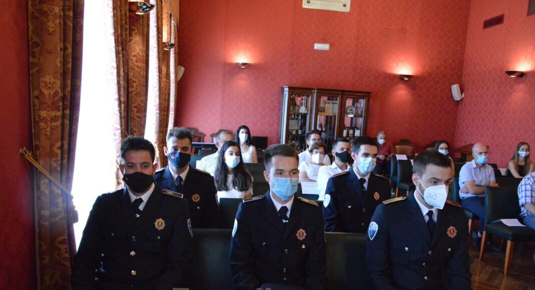 Felicitando a los cinco nuevos empleados públicos, comenzó su intervención Francisco Pérez que también recordó los momentos difíciles que han sufrido, primero en su formación con el cierre de la Escuela de Protección Ciudadana, y después con su incorporación prematura a las plantillas para ayudar a los ayuntamientos. Finalmente acabaron la formación y sus prácticas y “desde C-LM os pedimos profesionalidad y responsabilidad porque sois una pieza fundamental para garantizar la seguridad de los ciudadanos ahora más que nuca”. En este punto el delegado provincial recordó que si los ciudadanos no se ven seguros, difícilmente serán libres por lo que “sois garantes en primera línea de que cada día tengamos una sociedad más libre y justa”, recordó.