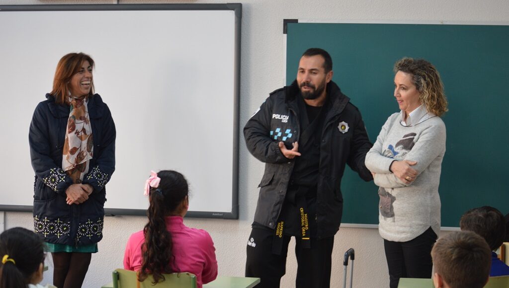 En el colegio San Isidro de Tomelloso se ha iniciado una actividad puesta en marcha por la concejalía de Seguridad Ciudadana para dar conocer entre los escolares de la ciudad los servicios que presta la Policía Local. Miguel Carlos Gómez, miembro de este Cuerpo, es el encargado de desarrollar esta iniciativa sobre seguridad ciudadana y defensa personal, dirigida a los alumnos de cuarto de primaria de la ciudad, una actividad muy interesante para que los niños conozcan la actividad que lleva a cabo la Policía Local, cómo trabaja y también para aclarar las dudas que puedan surgir, todo ello con el aliciente que supone que Miguel Carlos Gómez, sea cinturón negro de taekwondo.