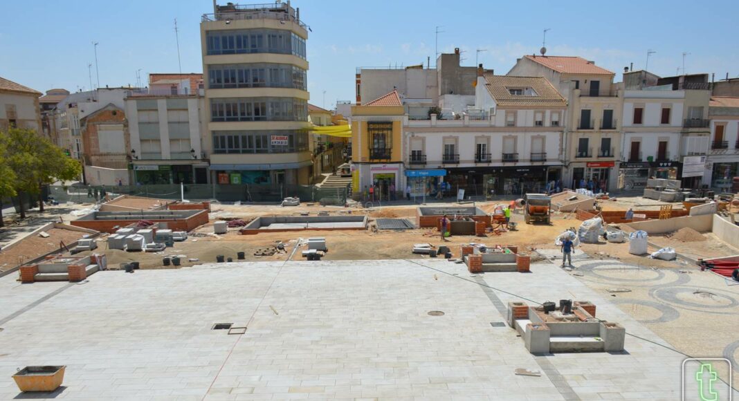 La alcaldesa de Tomelloso, Inmaculada Jiménez, ha anunciado que las obras de la Plaza de España continúan «a buen ritmo». De momento, la explanada central de la Plaza ya se encuentra casi finalizada, tras lo que faltarían los detalles ornamentales, como los árboles, el mobiliario, las faroles, los bancos o las esculturas -entre las que habrá una dedicada a Plinio-.