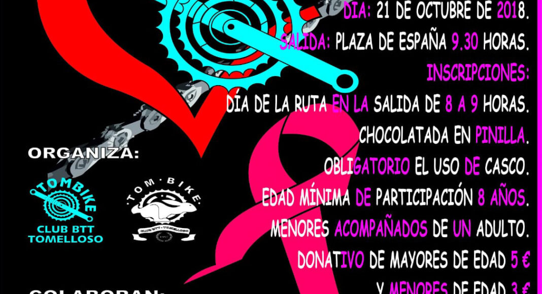 La ruta está organizada por el club Tombike BTT Tomelloso y el Área de Deportes que animan a los vecinos a participar en esta noble causa y recuerdan a los participantes incorporar en sus bicicletas algún distintivo de color rosa.