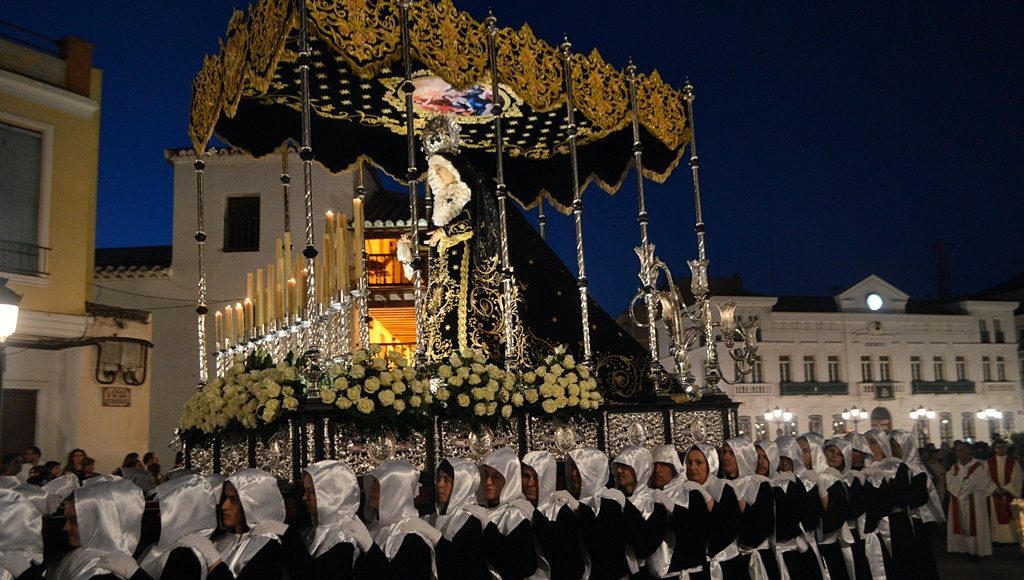 Abría la procesión la Hermandad del Cristo de la Misericordia, con sus miembros vestidos de azul y beige, que ha desfilado con los pasos, La Crucifixión de Jesús y el Cristo de la Misericordia. El Calvario y la Virgen de la Esperanza, han sido los tronos con los que ha marchado en procesión La Hermandad de Jesús del Perdón y Cristo del Calvario cuyos penitentes llevaban uniforme morado y marfil.