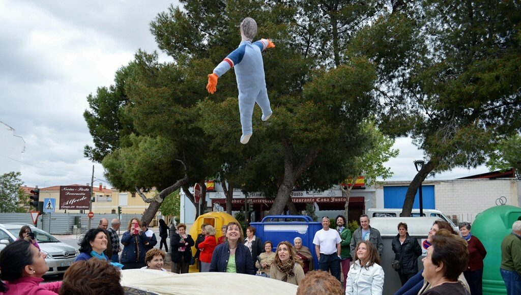 El domingo por la tarde, generalmente las mujeres, descolgaban al pelele y lo manteaban al ritmo de canciones llenas de ironía y picardías.