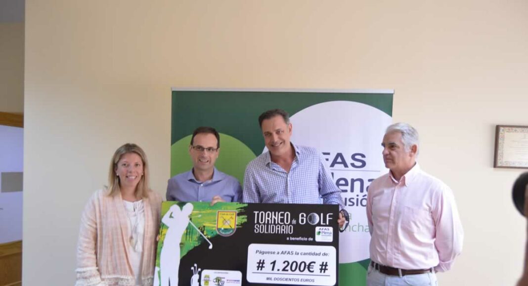 El club de golf Tomelloso este viernes a la Asociación de Familiares y Amigos de Personas con Discapacidad, AFAS, un cheque por valor de 1.200 euros, que fue el dinero recaudado en el I Torneo Solidario celebrado el pasado domingo, a beneficio de la asociación. Torneo en el que participaron 70 golfistas. En el acto participaron la alcaldesa de la ciudad, como invitada; el gerente de AFAS, Bernabé Blanco y el presidente el Club de Golf, Sebastián González.