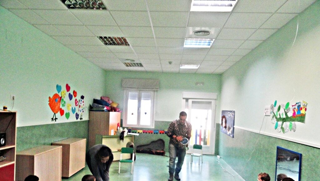 La pareja ha desplegado su embrujo antes los chiquitines, que han permanecido expectantes, algunas veces embobados y otras, han participado tocando los instrumentos.
