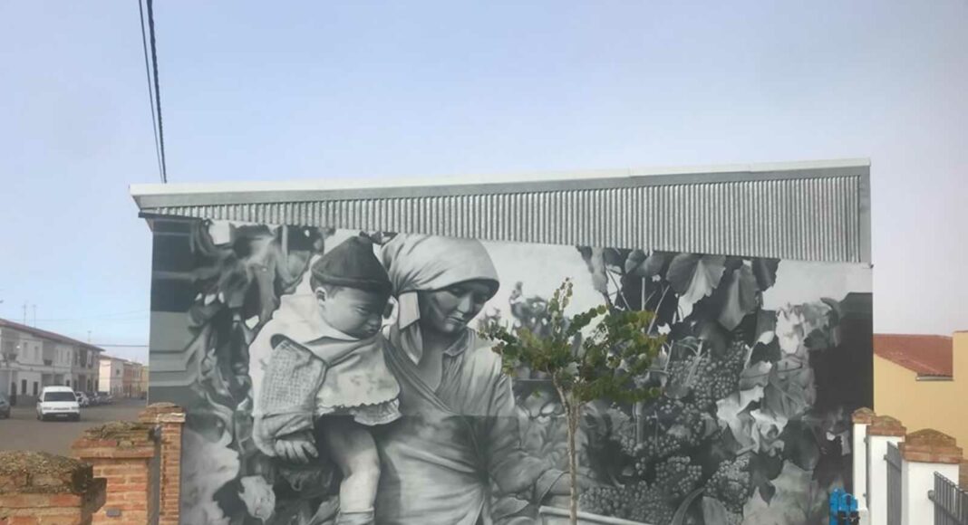 Tal y como apuntaba Campoy la imagen muestra la fortaleza de la mujer ante el esfuerzo de una actividad tan dura como vendimiar, cargando con su papel de madre. «He estado trabajando sobre el muro entre 15 y 20 días, aprendiendo nuevos efectos e intentando mejorar mi técnica aún más».