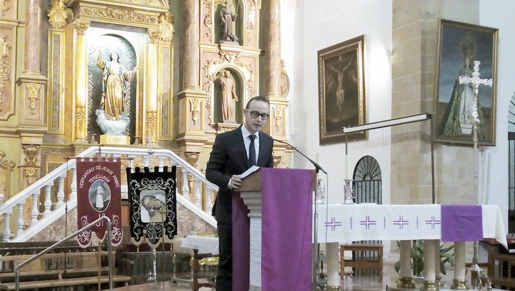 Madrigal se descalzó los zapatos de pisar alfombras y se puso las botas para llenarse de barro, para sumergirse hasta las corvas de las sensaciones vividas en la Semana Santa de Tomelloso. Empezó en el Domingo de Ramos, describiendo la procesión de la borriquilla, comparando aquel “¡bendito el que viene en nombre del Señor!” a aquel “¡crucifícalo!”. Hay que ser cristianos alejándonos de la Jerusalén en la que vivimos, venciendo contradicciones y  situándonos “en la primera línea de acción y buscar una sociedad más justa, más creíble, más libre y más solidaria”.