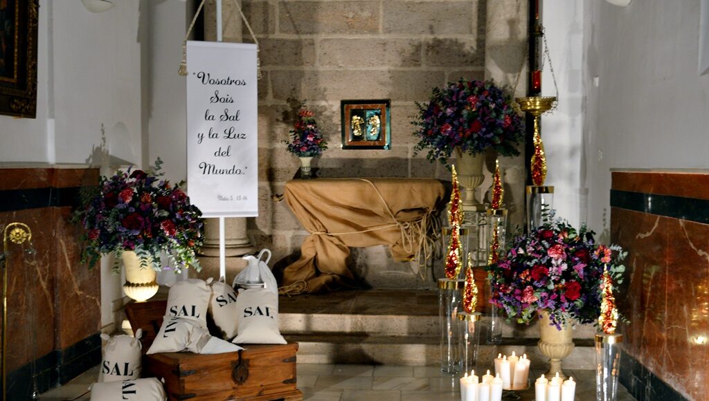 Se decoran con temas eucarísticos, flores, pasajes de la vida de Jesús y, al menos, doce velas. No deben llevar trofeos de la Pasión, paños negros o reliquias.