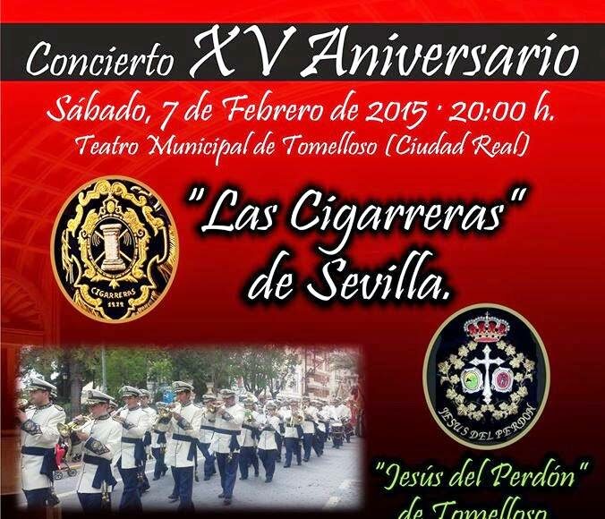 Mañana sábado, 7 de febrero, la Banda de Las Cigarreras de Sevilla, actuará en el Teatro Municipal a partir de las 20´00 h. para ofrecer un concierto que servirá para conmemorar el XV Aniversario de la Banda de Cornetas y Tambores Jesús del Perdón de Tomelloso. Se trata de un concierto que ha despertado gran interés por la calidad de las interpretaciones y porque la formación que dirige Dionisio Buñuel no actúa por tierras manchegas desde 2009, cuando visitó la capital provincial.