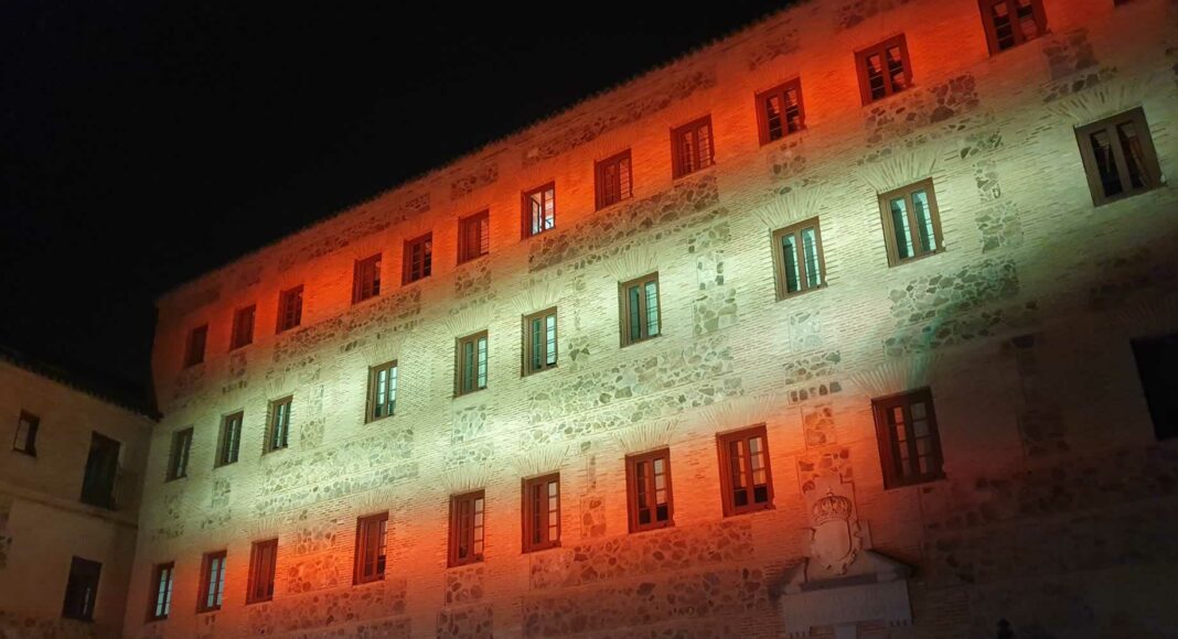 La fachada del edificio del Convento de San Gil en Toledo, sede de las Cortes de Castilla-La Mancha, se ha iluminado esta noche con los colores de la bandera española con motivo de la celebración del Día de la Constitución, el próximo 6 de diciembre, y del acto institucional que la casa acoge este jueves, con intervenciones de los presidentes de Castilla-La Mancha, Emiliano García-Page, y del parlamento autonómico, Pablo Bellido.