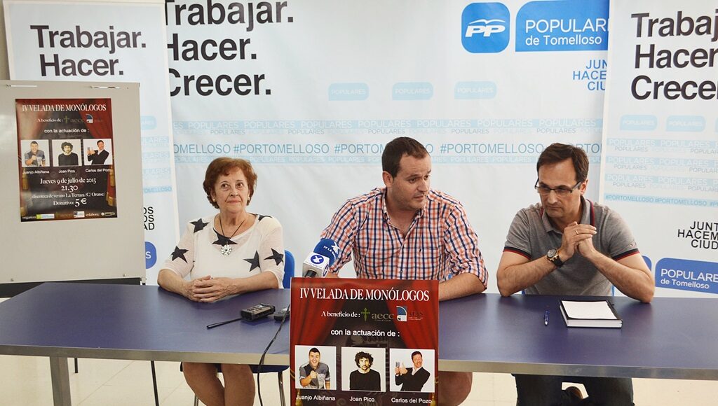 Ya hay fecha para la IV Velada de Monólogos solidaria que organizar Nuevas Generaciones del Partido Popular de Tomelloso. Será el jueves 9 de julio a las 21:30h en la discoteca La Terraza. En el espectáculo participaran tres monologuistas de Canal Comedy, Juanjo Albiñana, de Albacete, Joan Pico y Carlos del Pozo, falta de cerrar alguna incorporación de última hora. En esta ocasión las entidades beneficiarias de la velada serán la Asociación contra el Cáncer y AFAS.