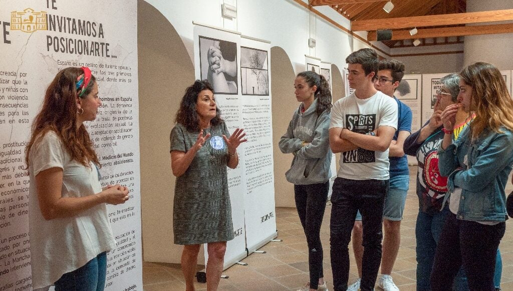 La muestra tiene además un marcado carácter didáctico ya que hoy la han visitado alumnos de dos centros de secundaria de Tomelloso, estando previsto que pase alguno más estos días por la Posada. Con ello se trata de sensibilizar a la gente joven como posibles consumidores y que entiendan que se trata de una forma más de violencia de género. Con el título “Posicionarte”, se invita a los visitantes a posicionarse por la eliminación de esta práctica a través de la formación de las mujeres, la articulación de leyes y sobre todo incidiendo en la educación de la población.