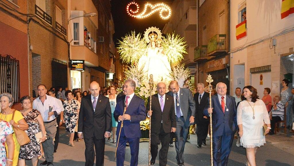 El cortejo procesional, que contó con número público durante todo su trayecto, salió de la Plaza de España recorriendo Independencia, Santa Rita, Doctor Cajal, Don Víctor Peñasco y regresó a la Plaza de España. Como es tradicional, un coro de ancianos de la Residencia San Víctor, dirigidos por la inefable Sor Teresa y acompañados al teclado por Marieli Blanco, cantó una Salve y su Himno a la Patrona de Tomelloso .