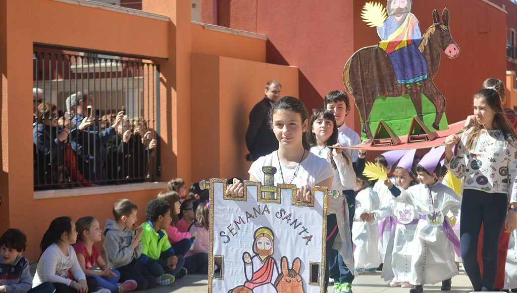 Se trata de un proyecto en que se han implicado padres, profesores y alumnos, en definitiva, toda la comunidad educativa del centro. Participaron todos los alumnos de Religión Católica, los más pequeños de nazarenos y los mayores fueron los costaleros. Este año como novedad se incorporaron a la procesión “manolas” y penitentes con capa española.